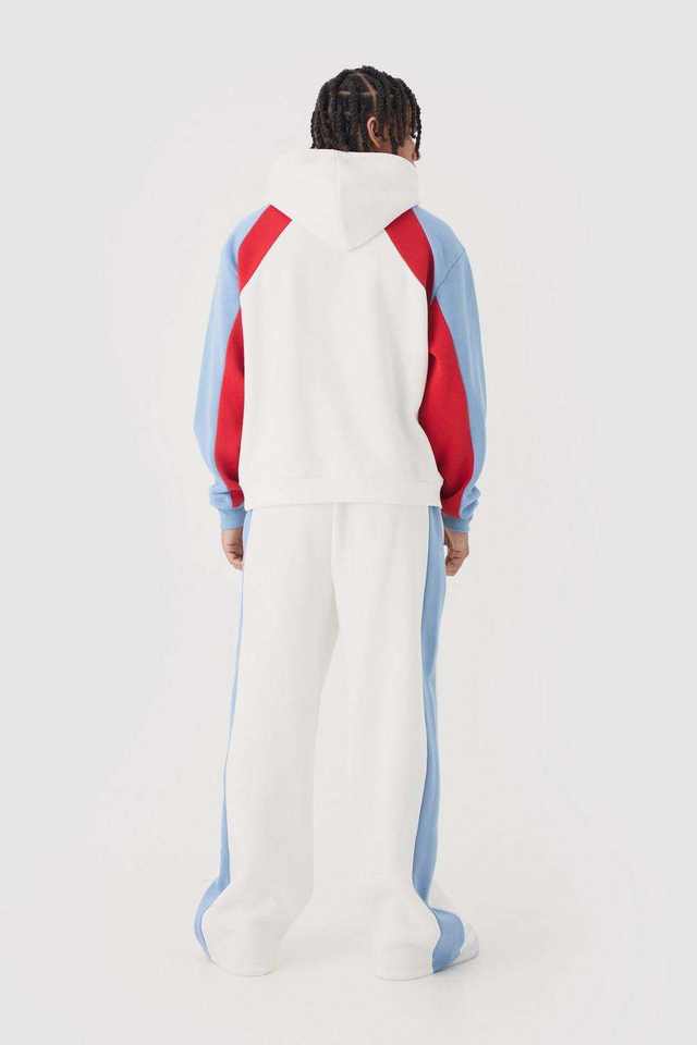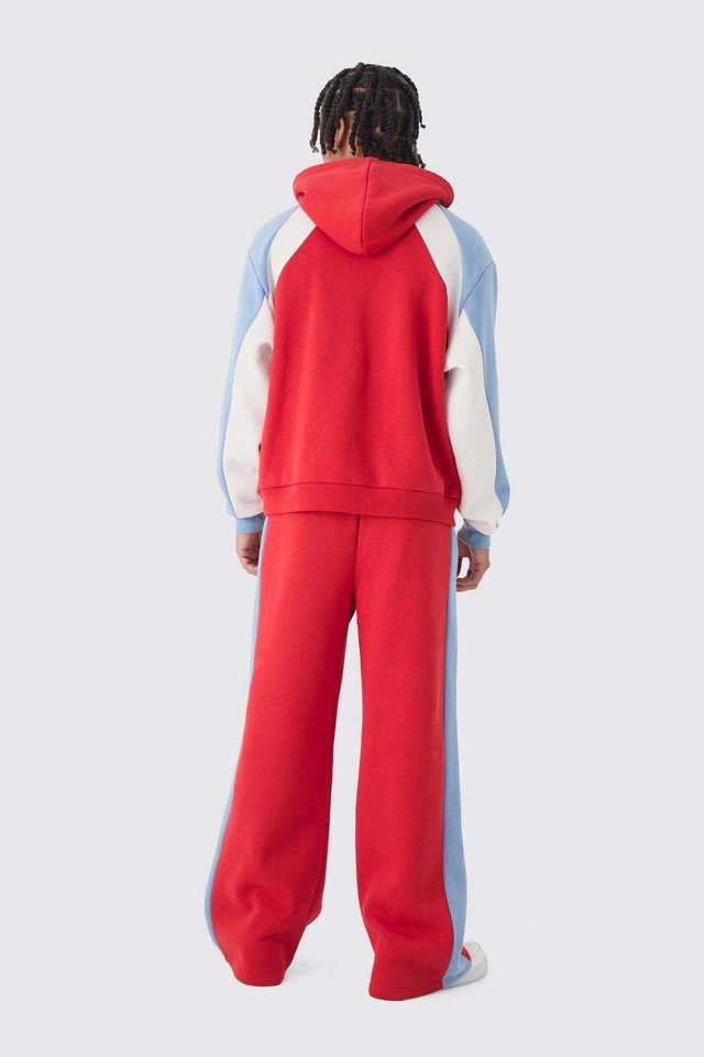 Ensemble de survêtement pour homme, style vintage d'hiver, à capuche, blocs de couleur, manches raglan, pantalon large, streetwear, athleisure, survêtement complet