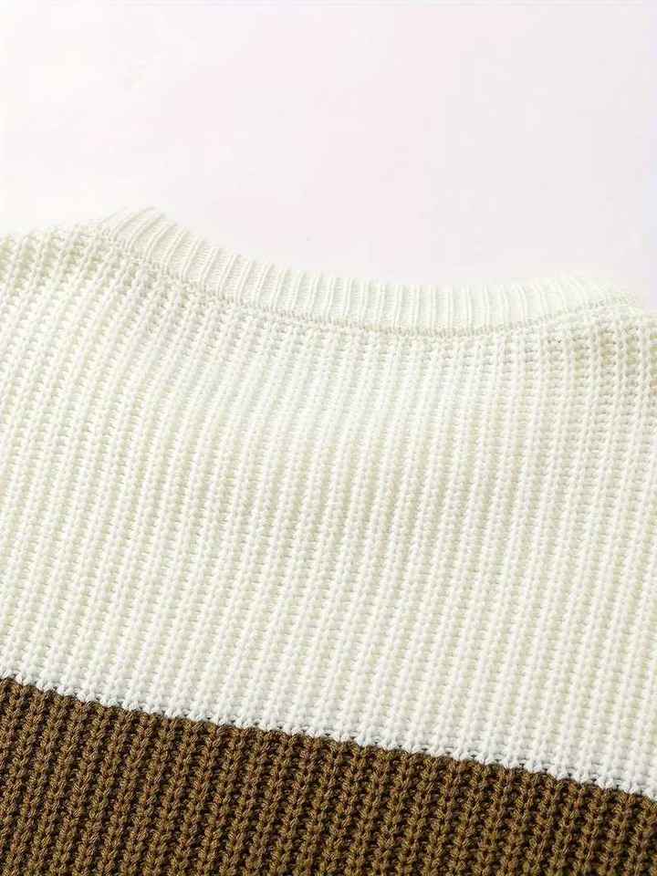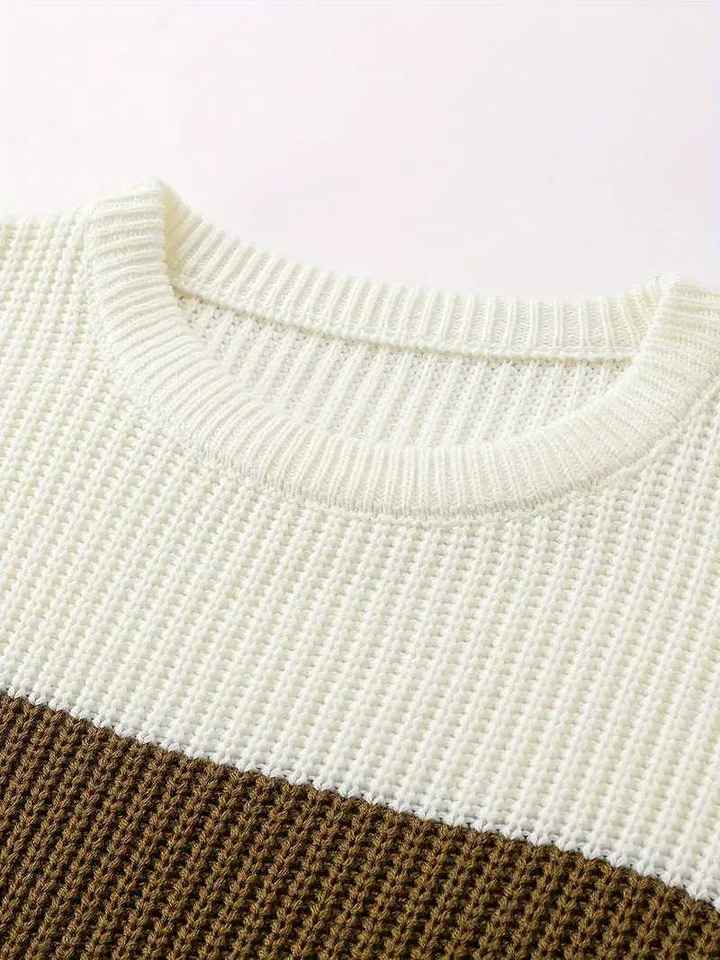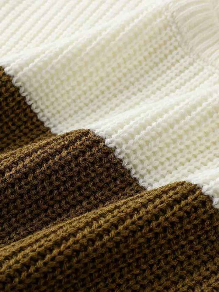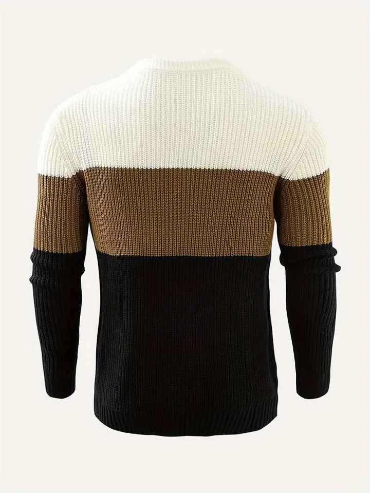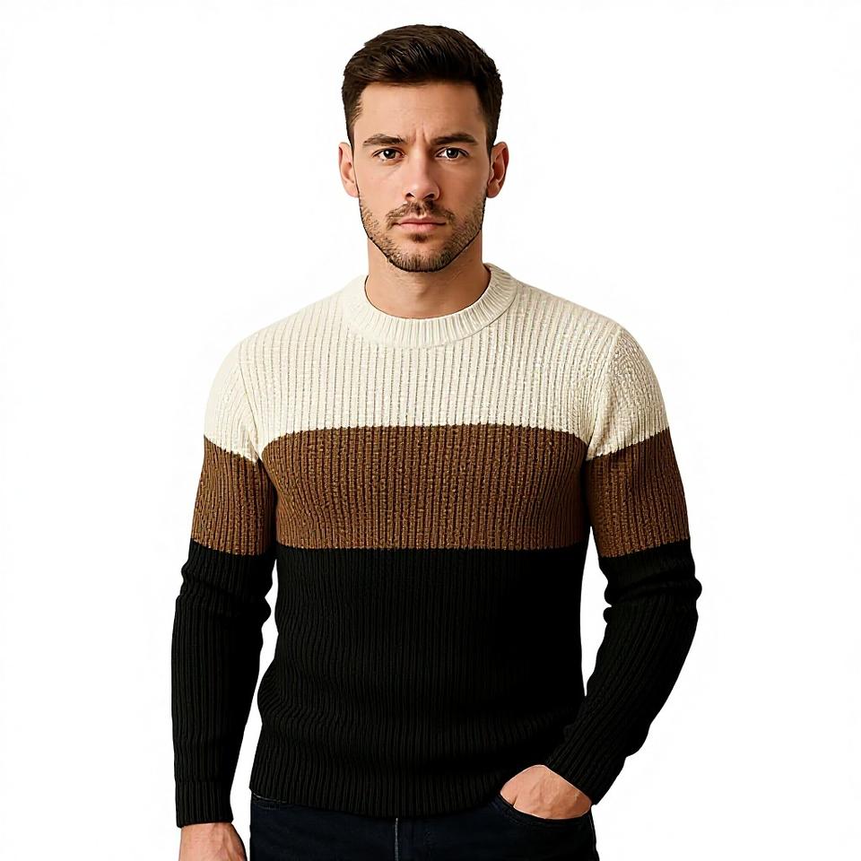 Pull en maille côtelé à col rond pour homme, coupe ajustée, color block, rayé, décontracté, chaud, pour l'hiver, tricot tendance pour homme