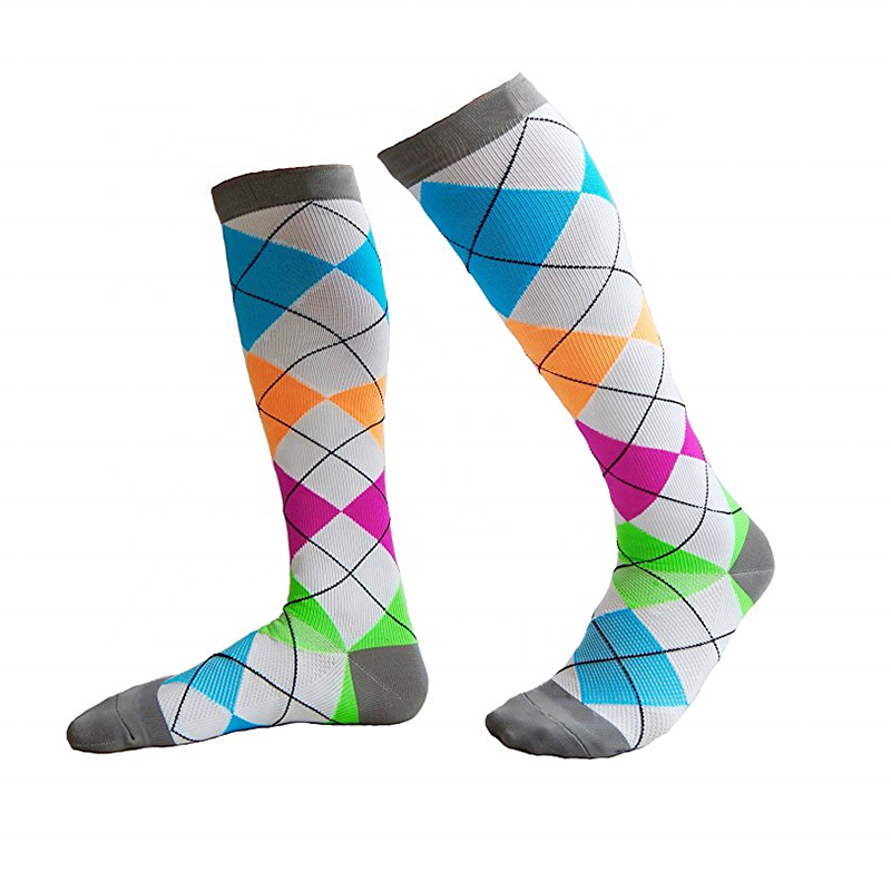 Chaussettes de compression pour hommes, chaussettes longues à carreaux colorés, chaussettes de course à pied, chaussettes fantaisie en diamant