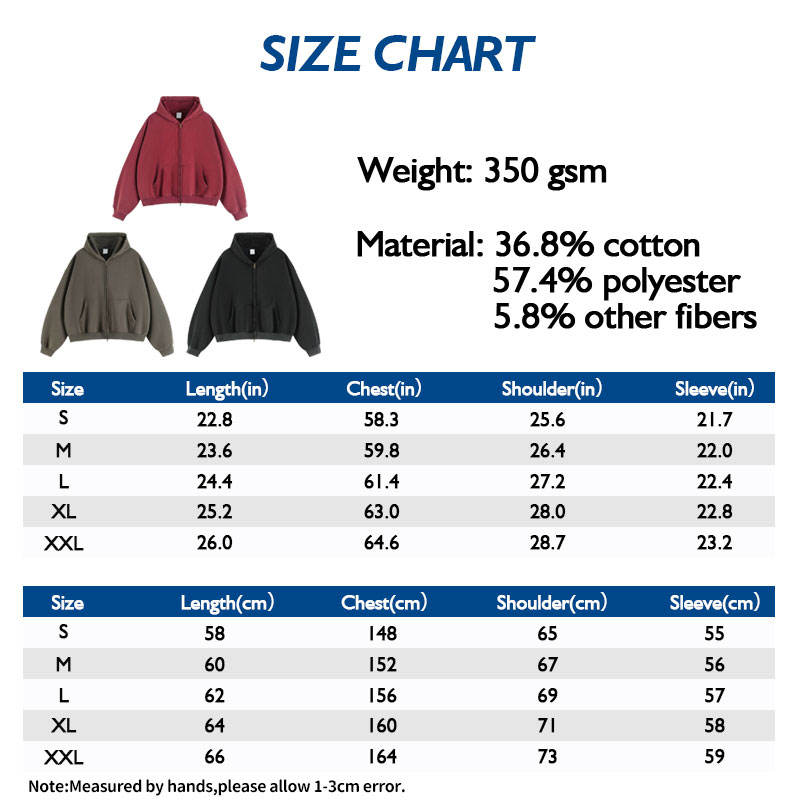 Men's Color Fading Zip Jacket Boxy Fit Heavyweight Fleece Distressed Thickened Hoodie