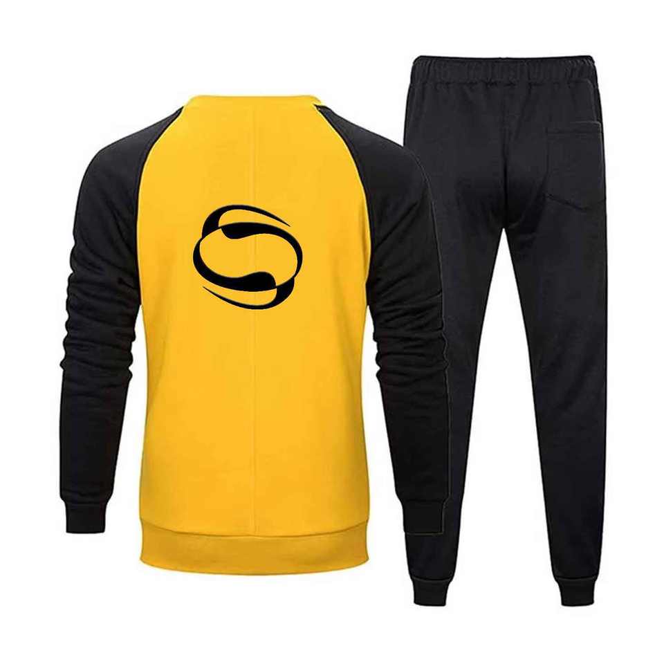 Men's Color Round Neck Long-sleeved Trousers Tracksuit Casual Sweat Suit Running Clothes Jogging Wear