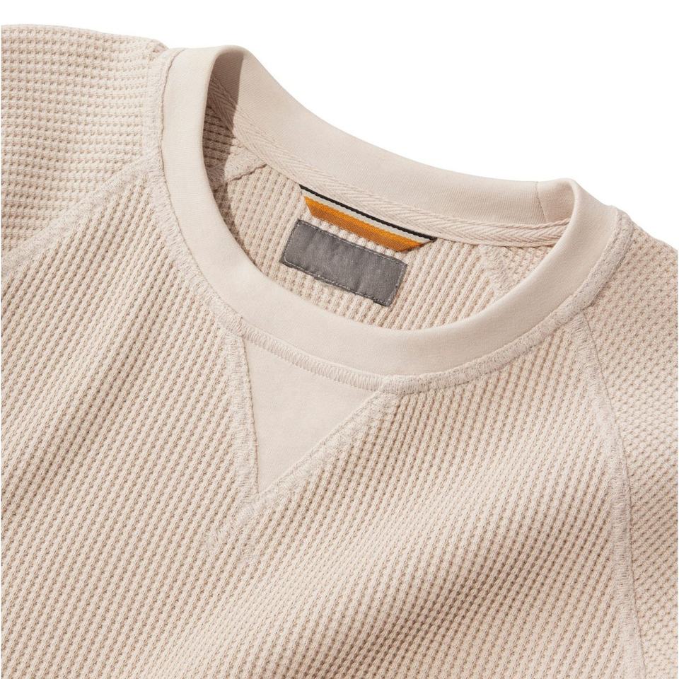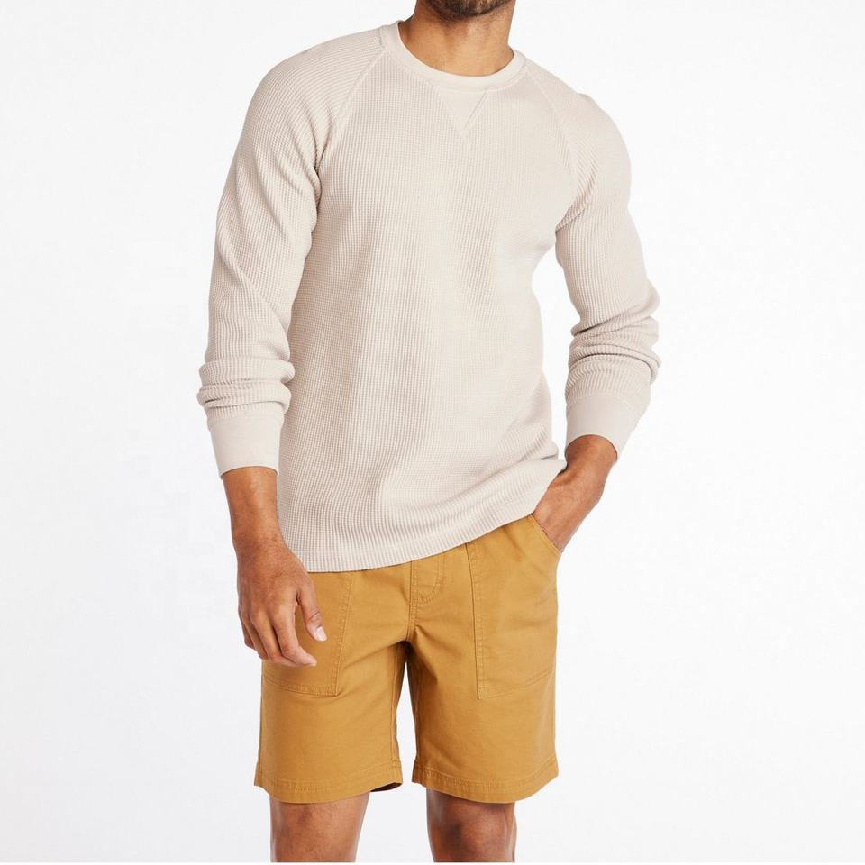 T-shirt décontracté à manches longues pour homme, coupe classique confortable, en maille gaufrée légère 100 % coton, respirant, séchage rapide, écologique