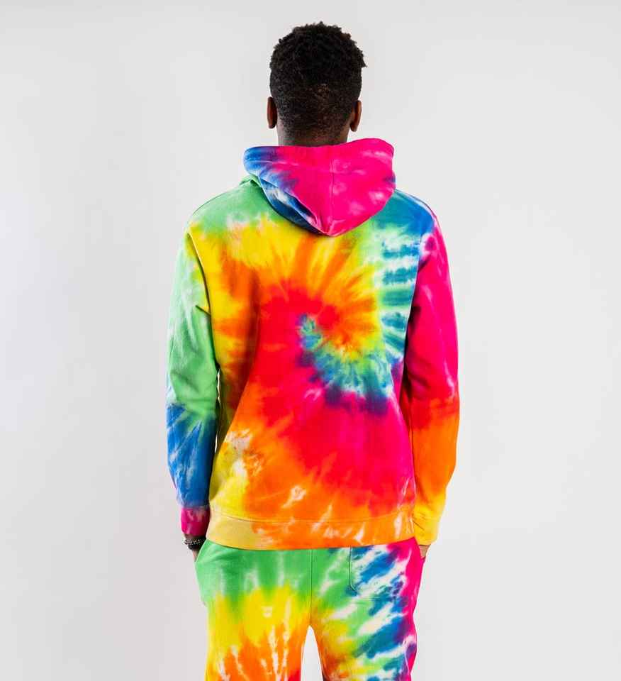 Survêtement deux pièces confortable et doux pour hommes, imprimé tie-dye, tenue décontractée, survêtement avec poche kangourou et cordon de serrage