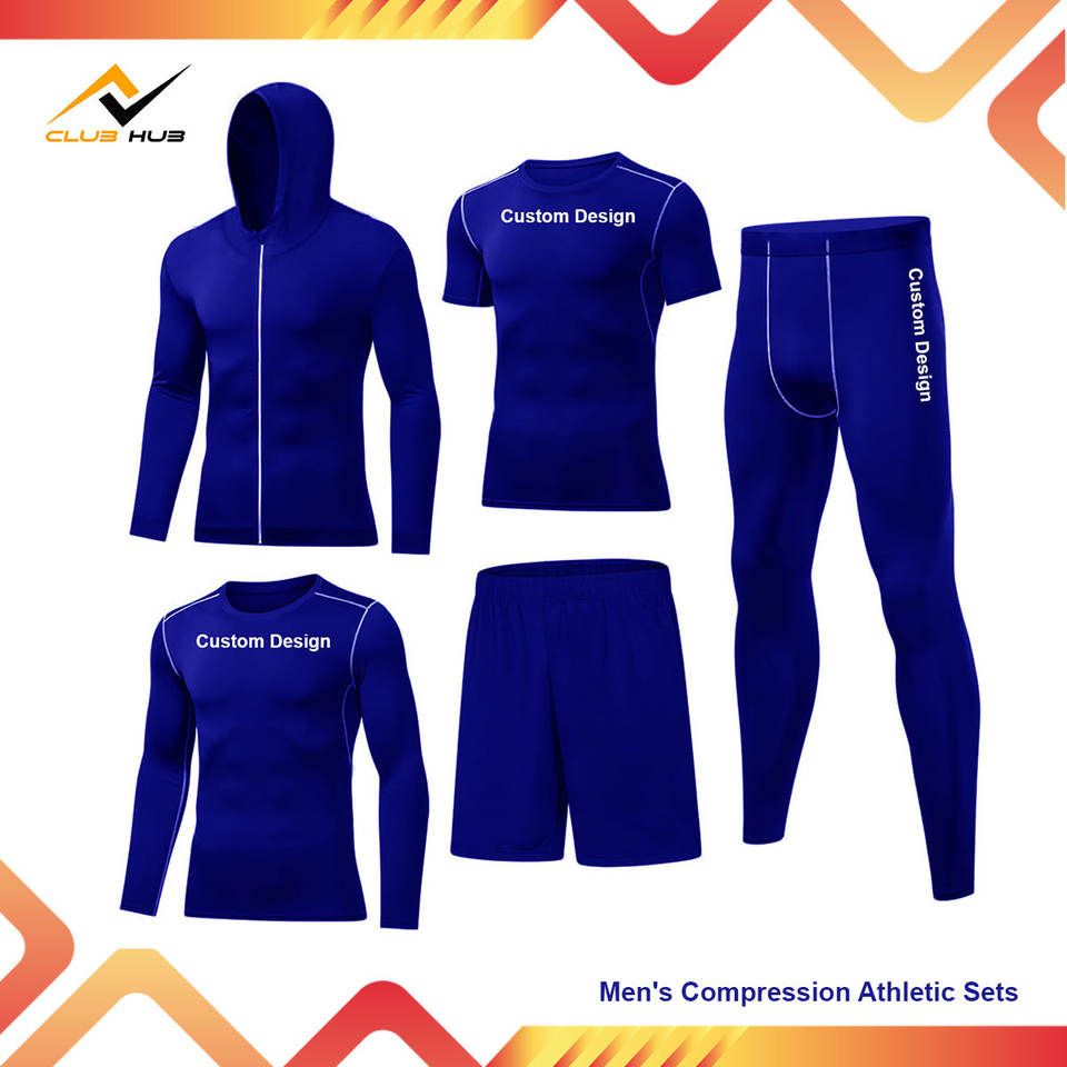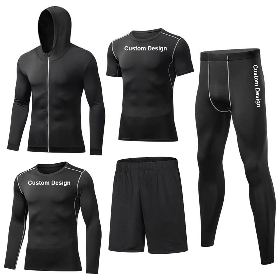 Ensembles athlétiques de compression pour hommes Ensemble de vêtements de gymnastique pour entraînement sportif de 5 pièces pour hommes moyens Ensembles athlétiques de compression personnalisés pour hommes