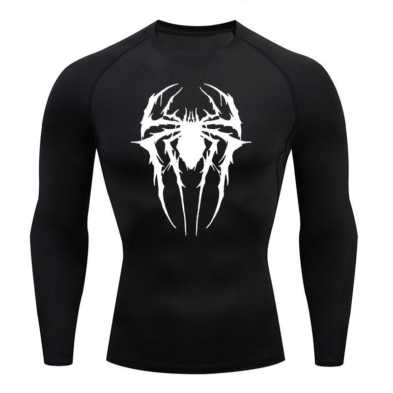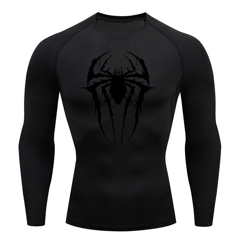 T-shirt de compression pour homme, motif araignée, imprimé gym, haute élasticité, ajustement serré, pour l'entraînement et la boxe