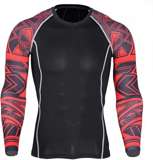 Ensemble de sport de compression pour homme Rouge Tribal à manches longues et leggings à séchage rapide pour MMA, Gym Fitness Training
