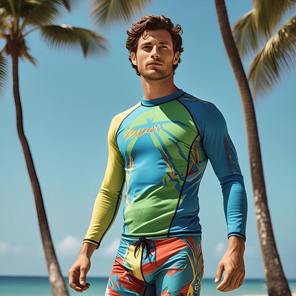Men's Compression Tight Shirts Athletic Surf Swim Rash Guard Men 100% Polyester Long Sleeve Compression Base Layer Rash Guard
