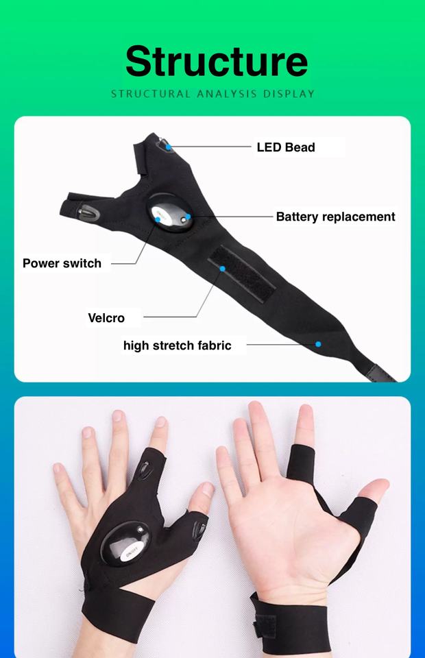 Gants de lampe de poche LEDFonction
