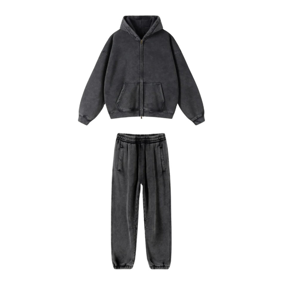 Ensembles de jogging pour hommes en molleton de coton et polyester lavé, style baggy zippé, survêtements vintage, grandes tailles, logo personnalisé, OEM