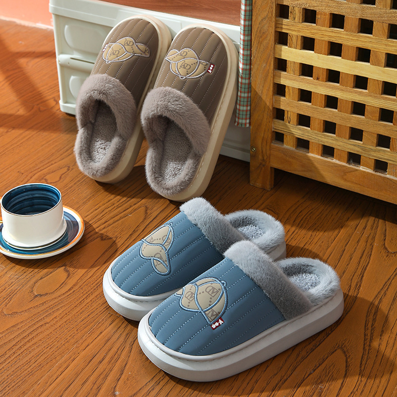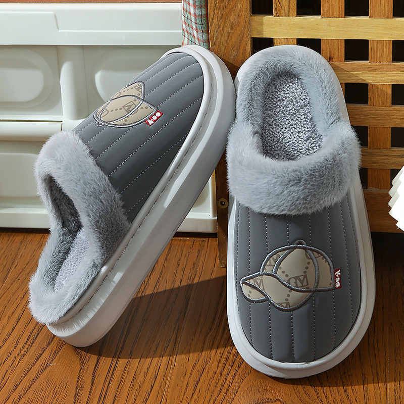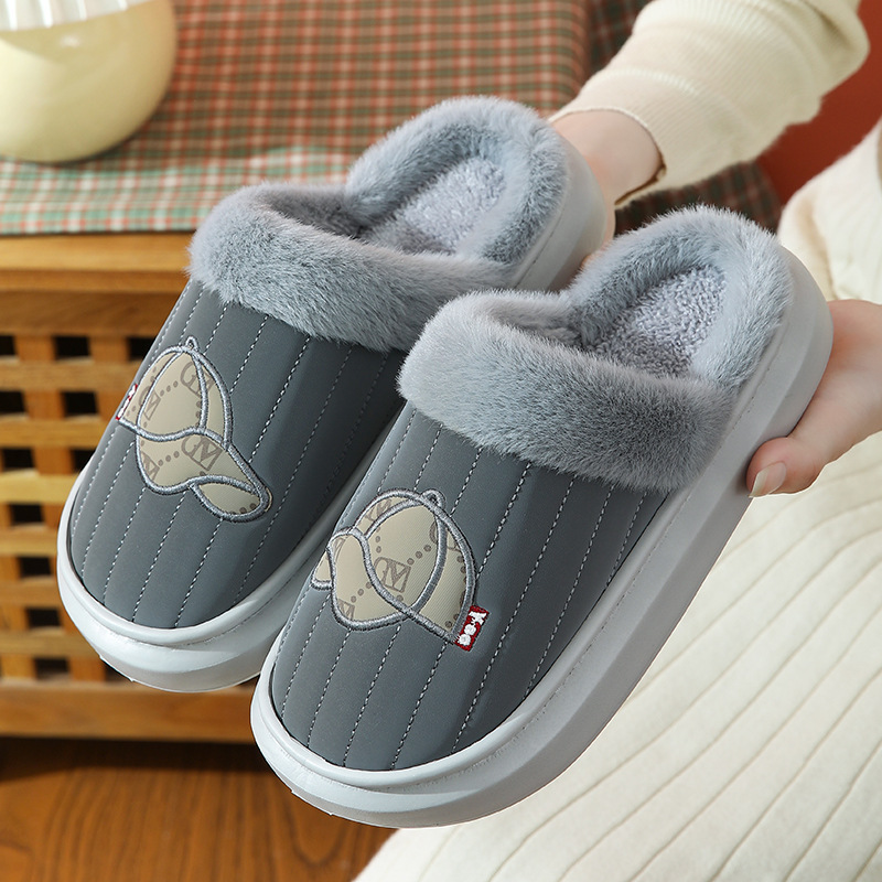 Pantoufles en coton pour homme extra large fond épais imperméable PU pantoufles d'hiver pour femme pantoufles moelleuses sandales tongs