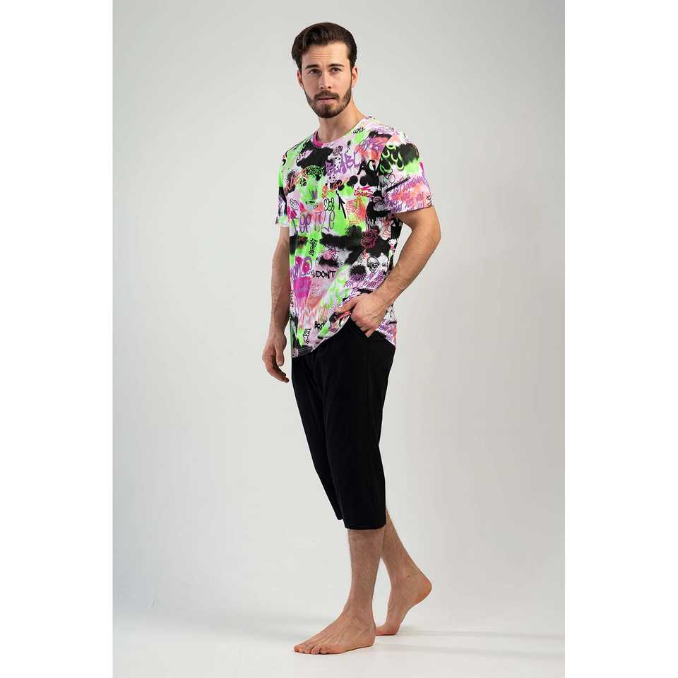 Ensemble capri à manches courtes et col rond pour homme avec poches, débardeur et short