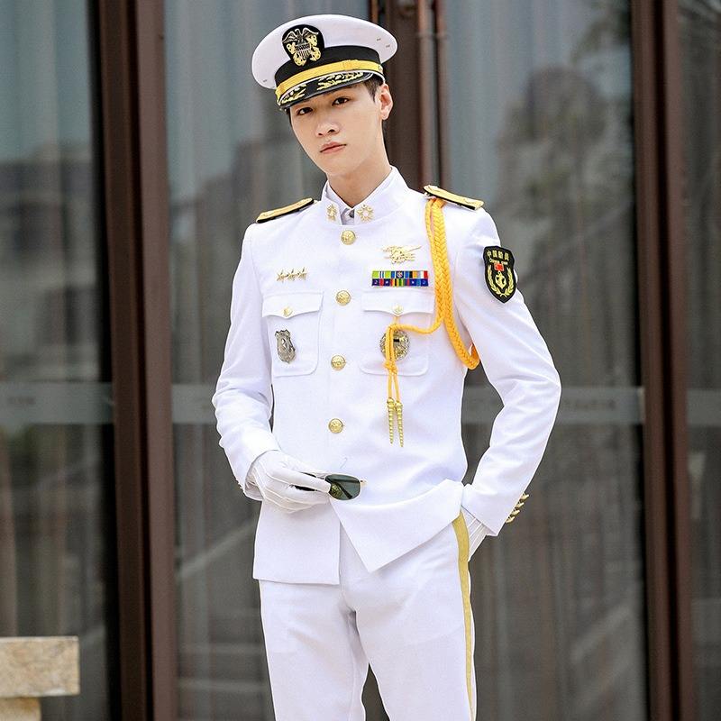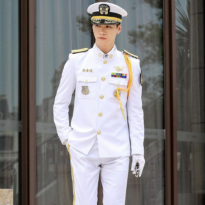 Uniforme d'équipage pour hommes, uniforme de marin, veste de costume nautique, uniforme de sécurité blanc, ensemble d'uniformes de concierge avec image postale