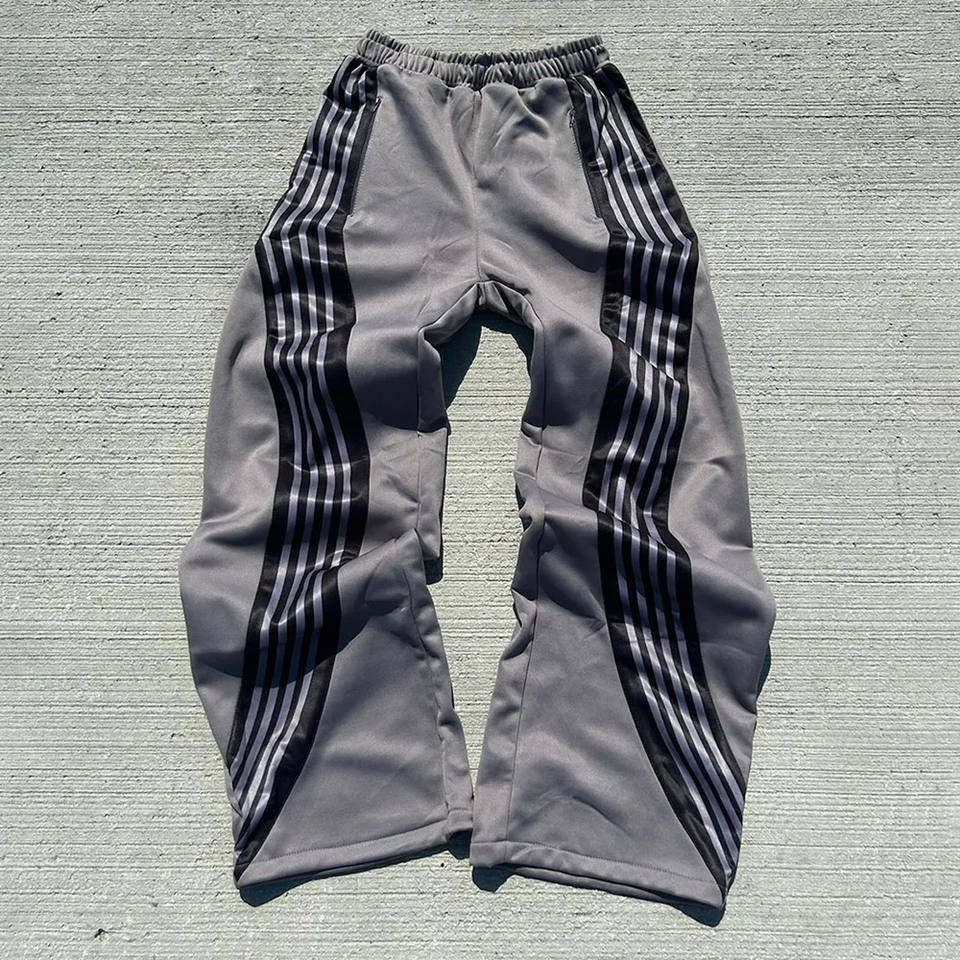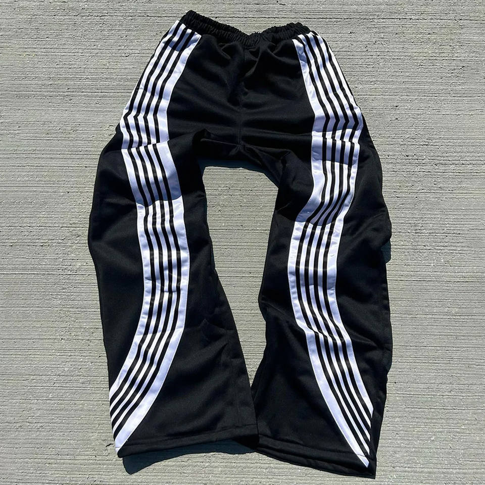 Pantalon de survêtement en tricot droit à rayures incurvées pour hommes Streetwear Pantalon de survêtement à jambe droite surdimensionné en coton polyester à rayures pour hommes
