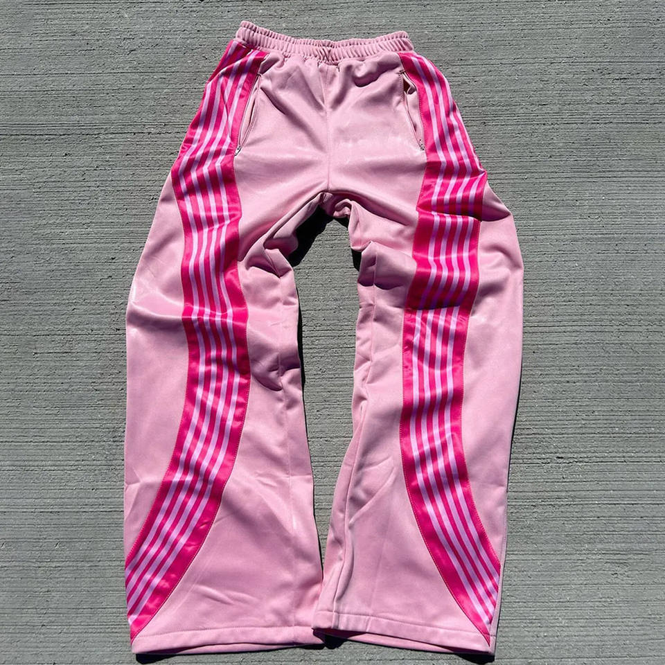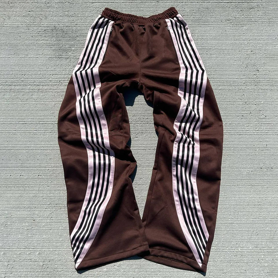 Pantalon de survêtement en tricot droit à rayures incurvées pour hommes Streetwear Pantalon de survêtement à jambe droite surdimensionné en coton polyester à rayures pour hommes