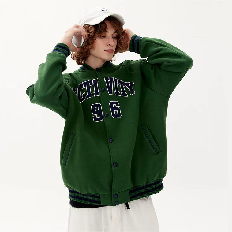 Veste universitaire de baseball à manches longues avec col montant pour hommes, vente en gros, écussons en chenille 100% laine personnalisés