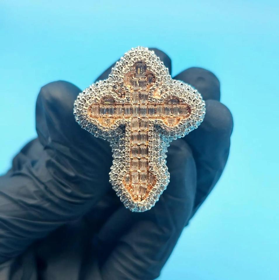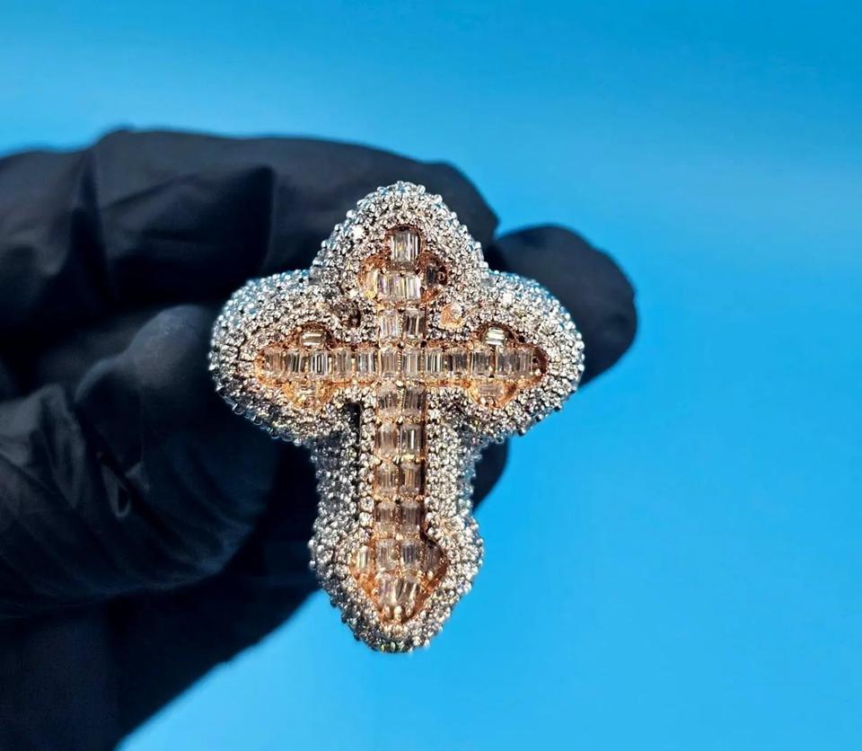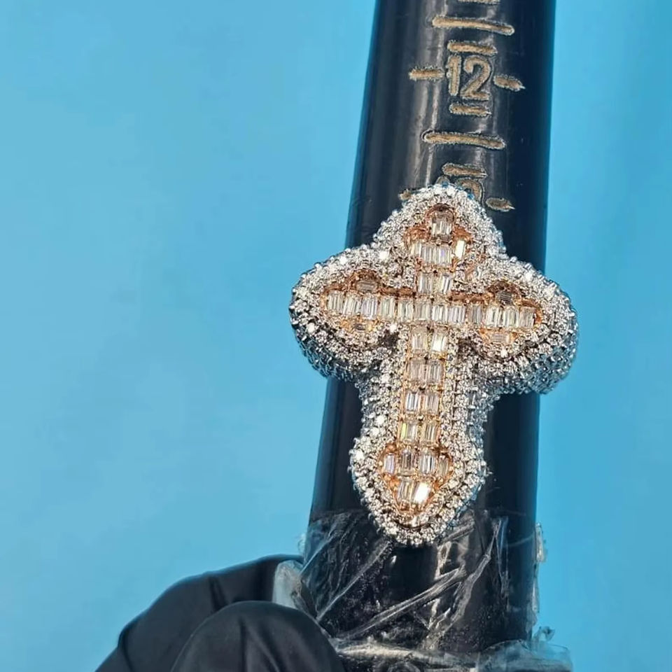 Bague pour homme personnalisée en argent massif 925 plaqué or, sertie de moissanite taille émeraude pavé, certifiée IGI, style croix bling hip-hop pour rappeur