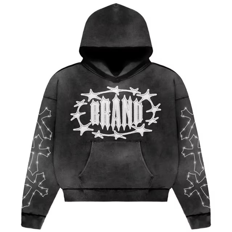 Sweat-shirts à capuche pour hommes avec logo de marque personnalisé, vêtements décontractés, design élégant avec strass, respirant, sweat-shirt unisexe à prix avantageux