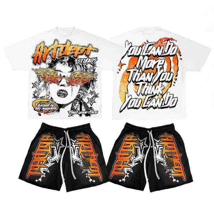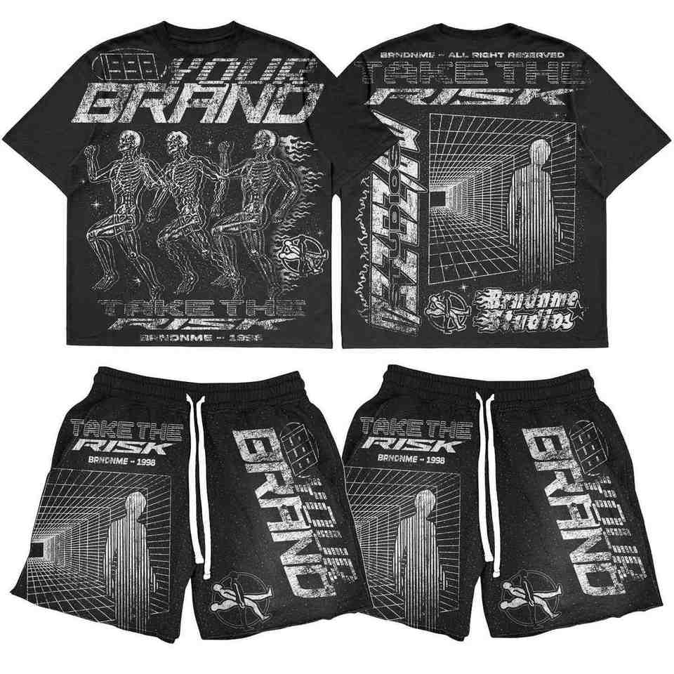 Ensemble t-shirt et short en éponge respirant personnalisé pour hommes DTF DTG Sublimation Rhinestone Streetwear deux pièces Summer Wear OEM 100% coton