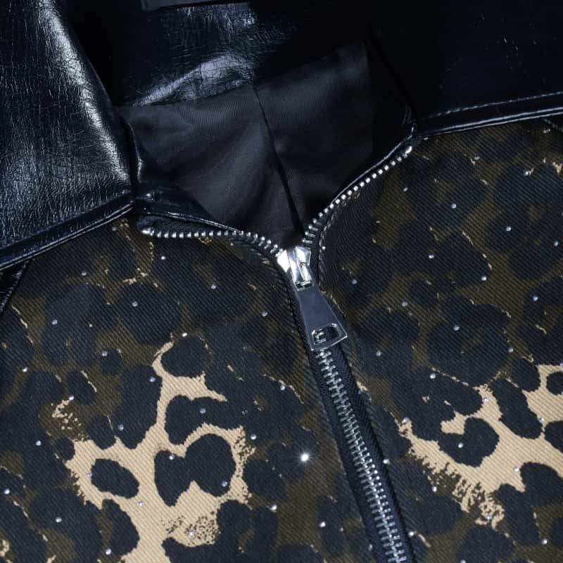Veste décontractée personnalisée pour homme à imprimé léopard, veste streetwear à panneaux contrastés avec logo personnalisé