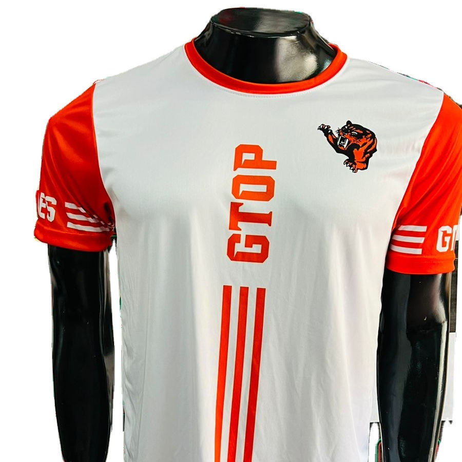 T-shirt en jersey d'élasthanne en coton avec broderie personnalisée pour hommes, teint à l'immersion avec de vraies photos imprimées, tissu tricoté avec logo