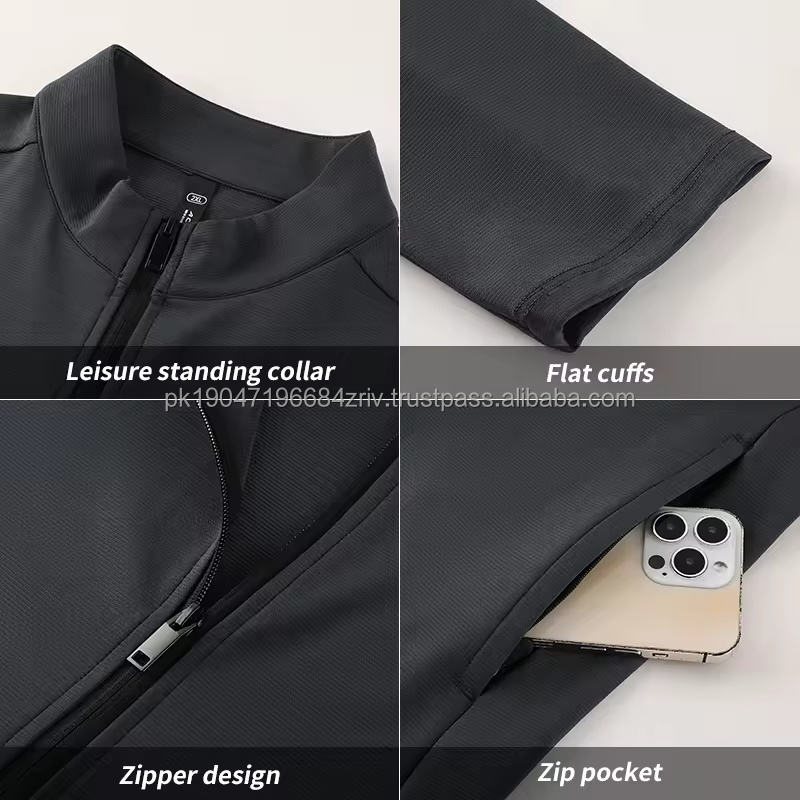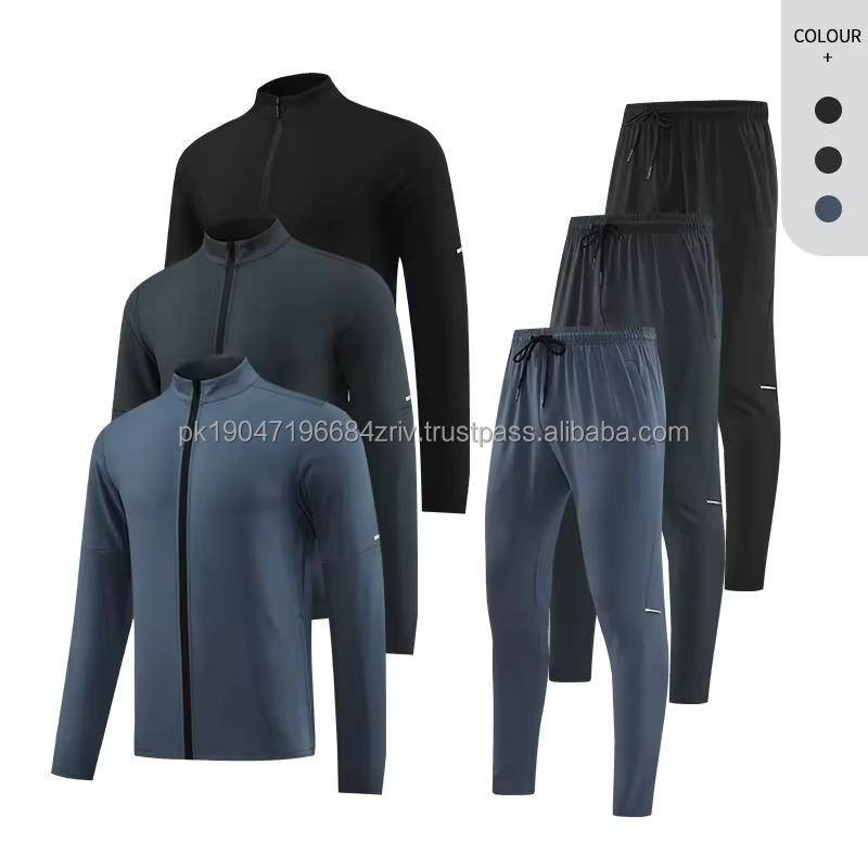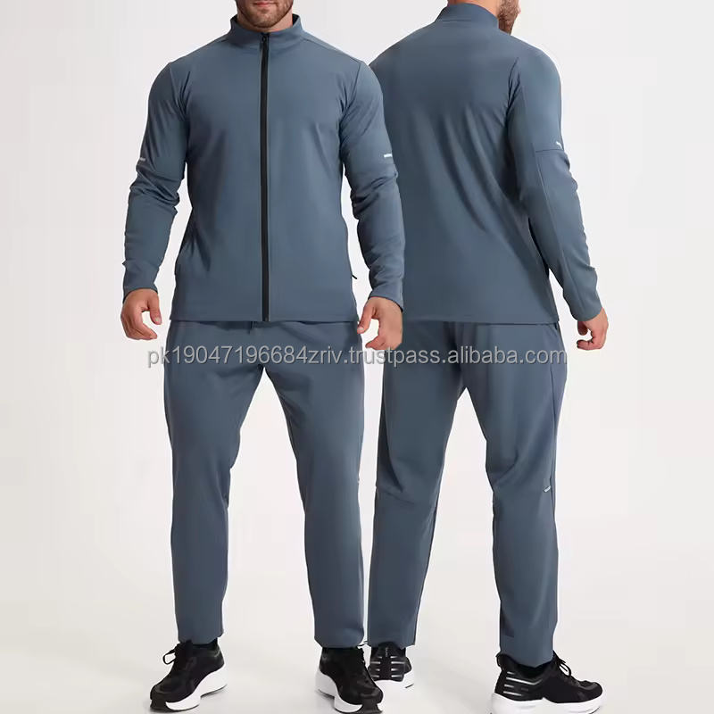Ensemble de survêtement personnalisé pour homme avec fermeture éclair intégrale, motif uni, pantalon de jogging et veste 100 % polyester léger à col ras du cou pour la gym, le football et l'été