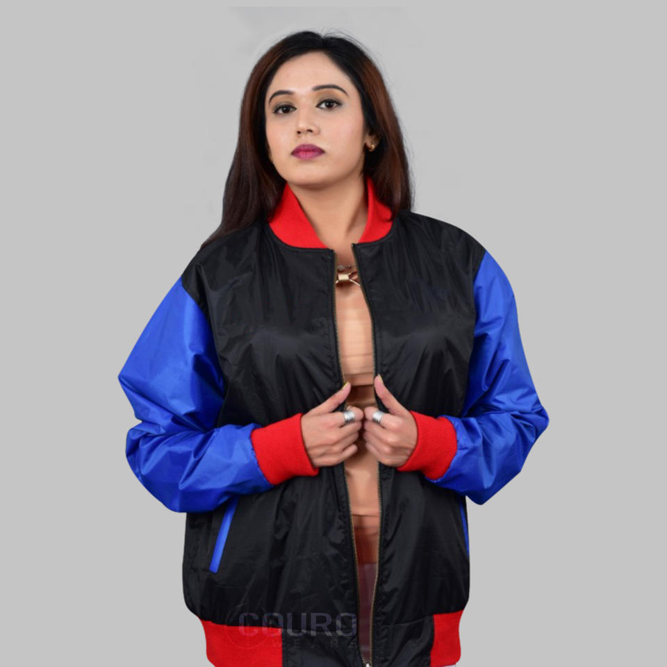Blouson d'aviateur en nylon à double fermeture à glissière avec logo personnalisé pour hommes avec col montant design d'hiver enduit traitement