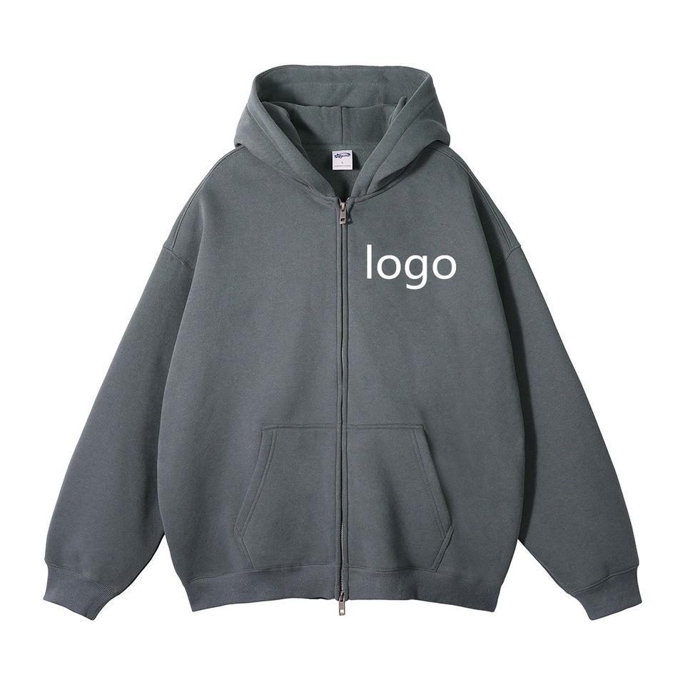 Sweat à capuche avec logo personnalisé pour hommes Haute qualité 100% coton Vêtements d'hiver décontractés sans cordon de serrage Sweat à capuche avec fermeture éclair complète pour hommes