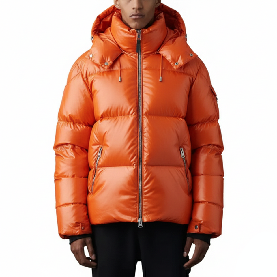 Veste d'hiver de luxe pour homme avec logo personnalisé, imperméable, coupe-vent, respirante, à capuche, rembourrée en duvet, avec fermeture éclair sur le devant