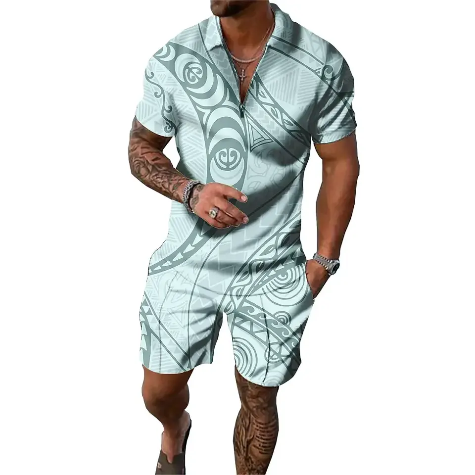 Ensemble polo et pantalon pour homme avec logo personnalisé, design polynésien