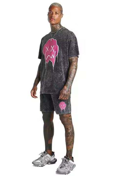 Ensemble T-shirt et short pour homme avec impression de logo personnalisé, délavage acide, style décontracté, nouvelle mode, été, style délavé, 100% écologique