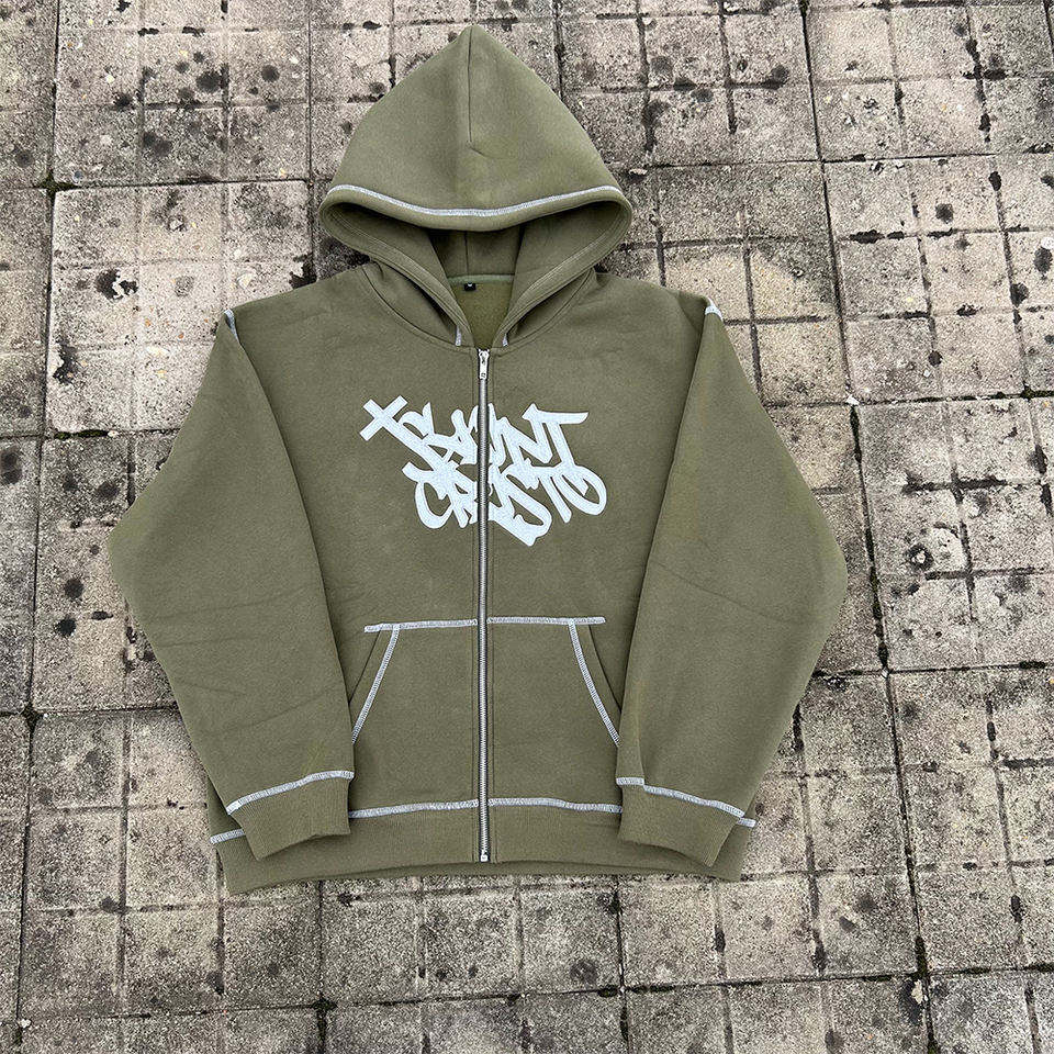 Ensemble de survêtement pour homme avec logo personnalisé imprimé, sweat à capuche zippé et pantalon de jogging, design brodé, vêtements de sport décontractés d'automne, respirant