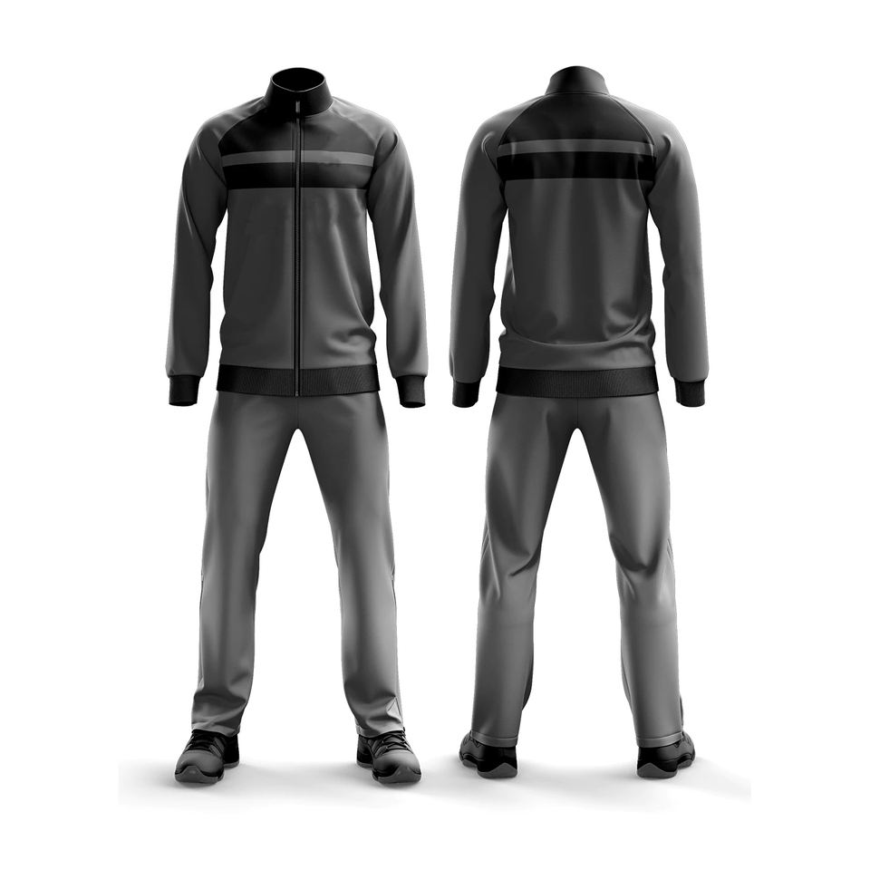 Veste et pantalon de survêtement zippés imprimés avec logo personnalisé pour hommes, vêtements de sport d'équipe en polyester gris pour l'entraînement, survêtement de style