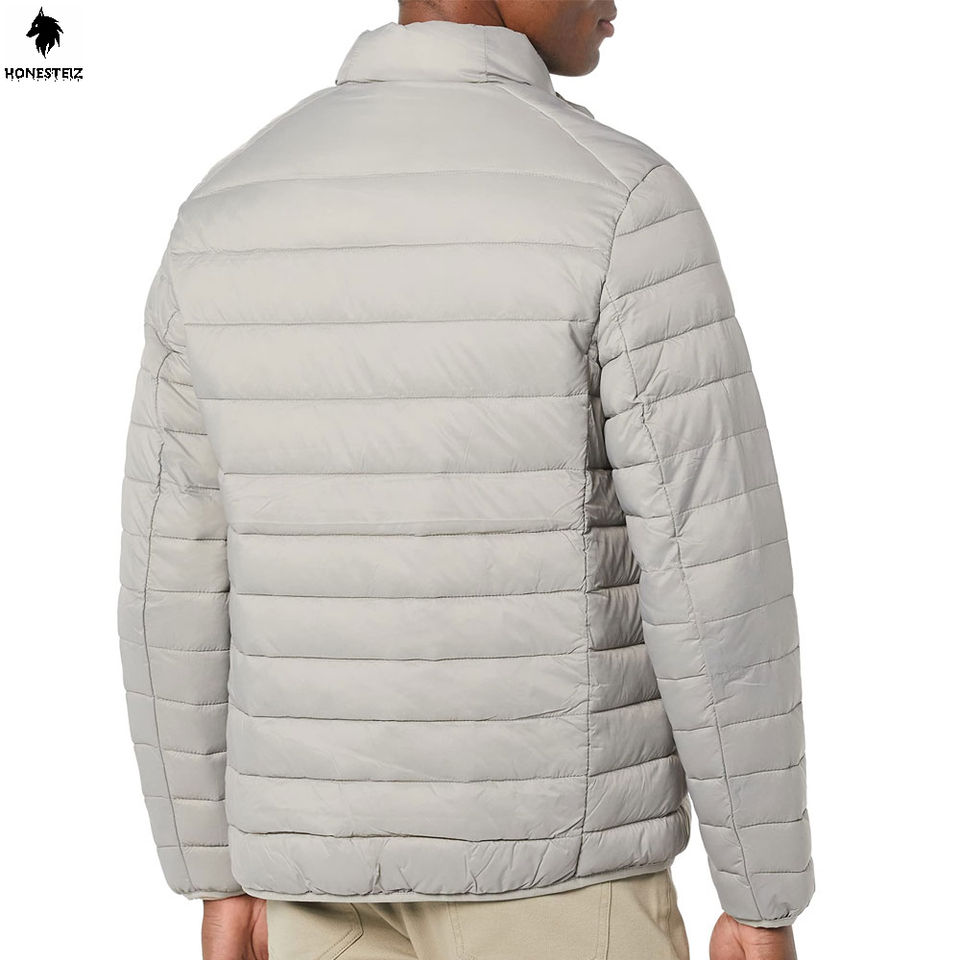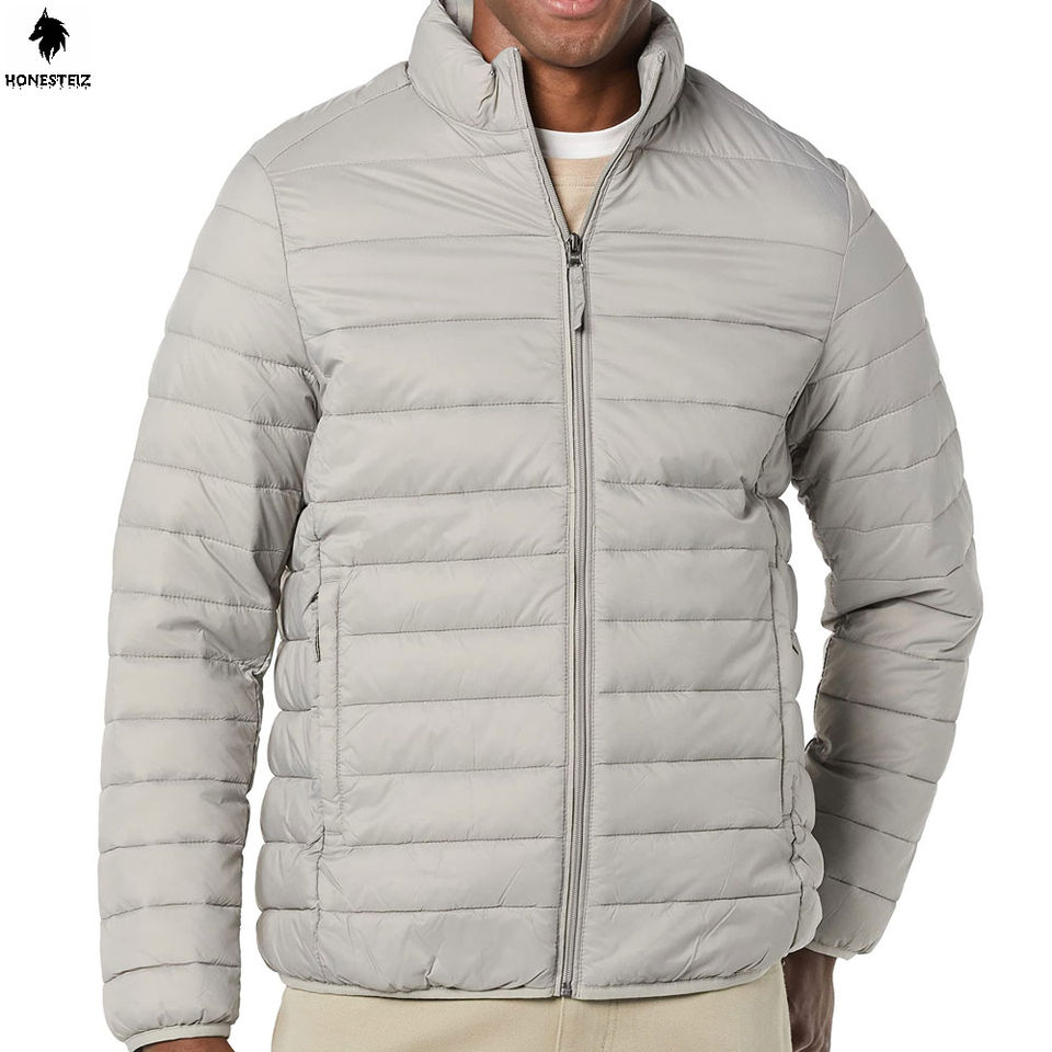 Veste matelassée avec logo personnalisé pour hommes, vente en gros de tissu en polyester imperméable, col à capuche, décoration hivernale à motif pour l'extérieur