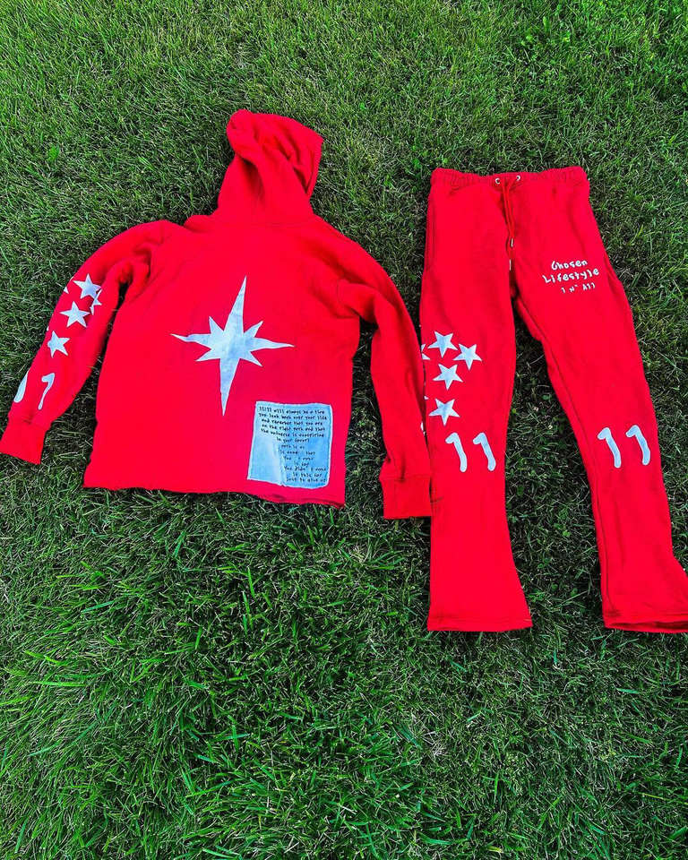 Ensemble de survêtement streetwear personnalisé pour homme, jogging à capuche noir, imprimé étoiles, tenue décontractée hip-hop, mode masculine, à capuche noire
