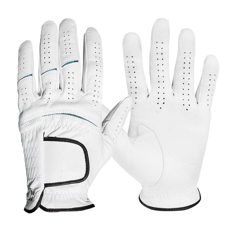 Gants de golf blancs avec logo personnalisé pour hommes en cuir véritable, respirants et antidérapants pour le sport, main gauche et main droite