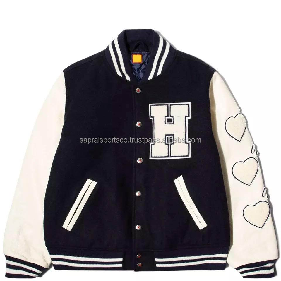 Veste de baseball d'hiver personnalisée pour homme, style varsity, manches longues, en laine/polyester, col montant, boutonnée, style Letterman, imperméable