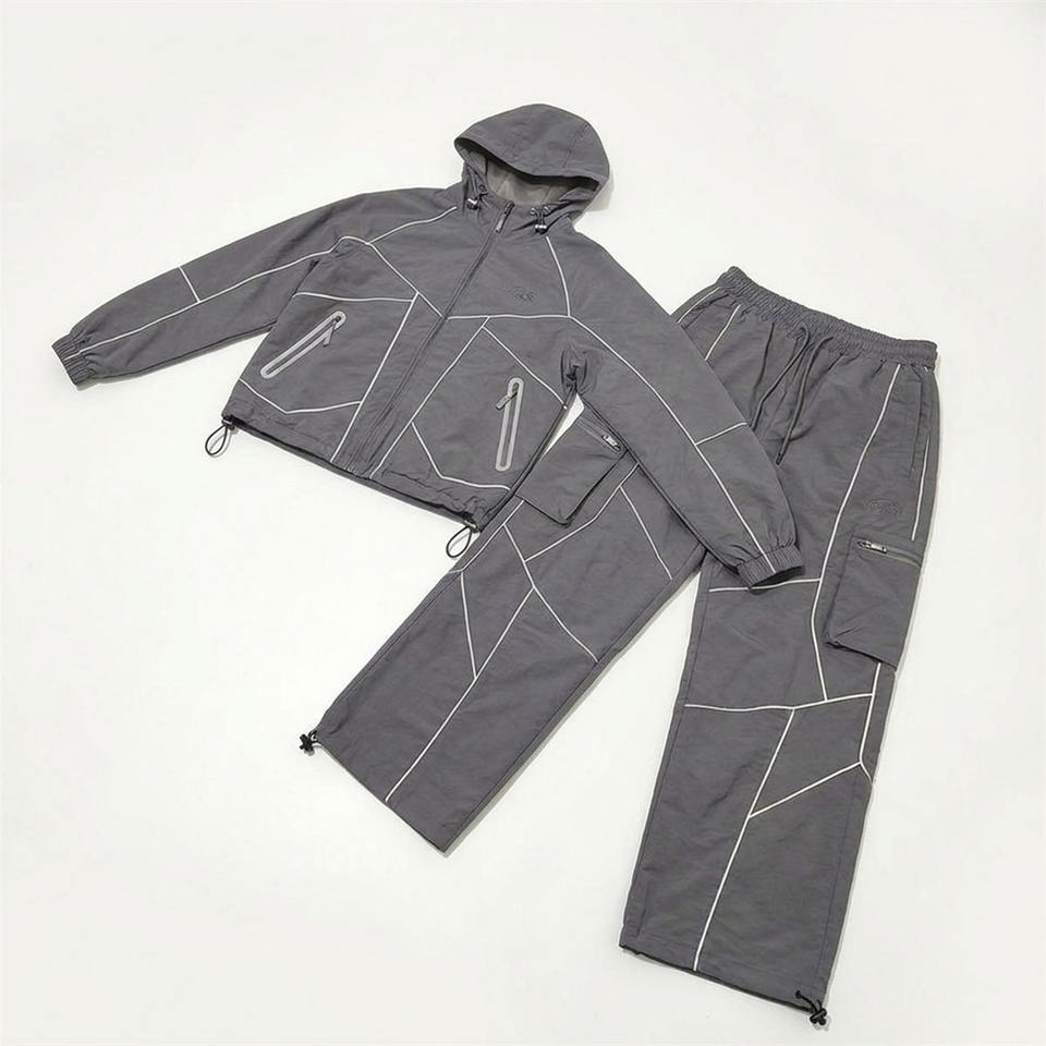 Vêtements de sport d'extérieur personnalisés pour hommes, veste coupe-vent en polyester et nylon avec fermeture éclair et capuche, pantalon en tricot