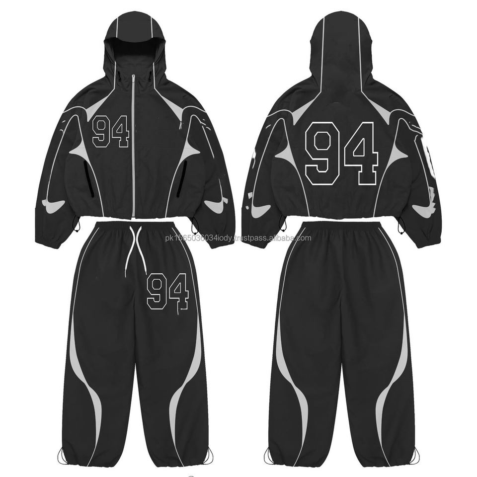 Ensemble de survêtement coupe ample zippé pour homme, style streetwear, grande taille, coupe-vent