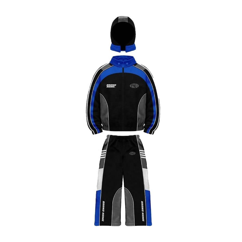 Ensemble de survêtements baggy en polyester personnalisés pour hommes veste coupe-vent respirante jambe droite pour les sports de rue grande taille hiver solide