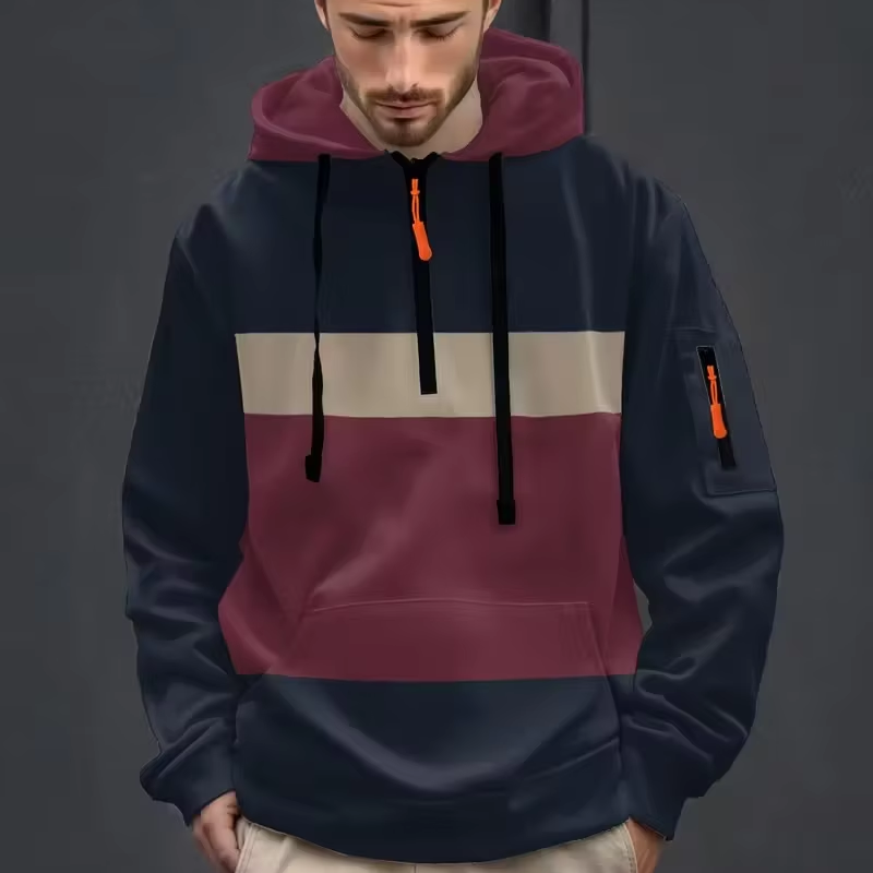 Sweat à capuche pour homme, imprimé personnalisé, fermeture éclair intégrale, design bicolore, coupe ample, décontracté, manches longues, sweat à capuche avec inscription