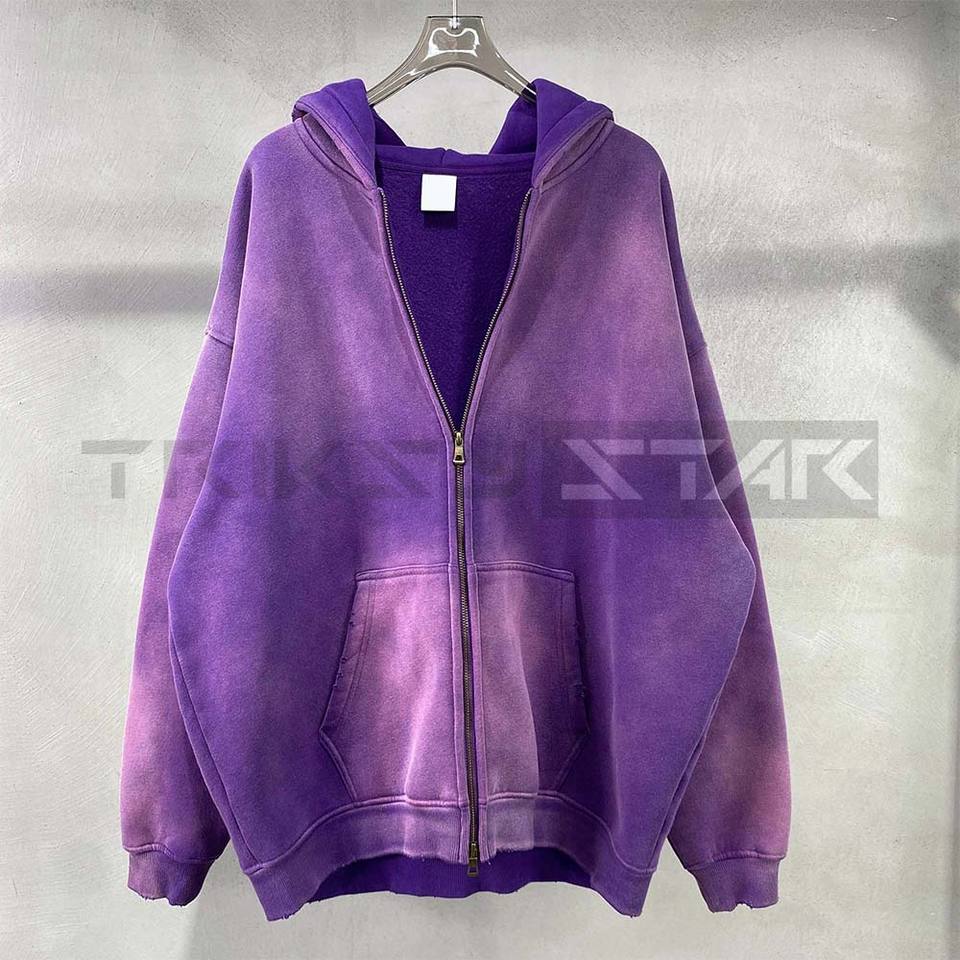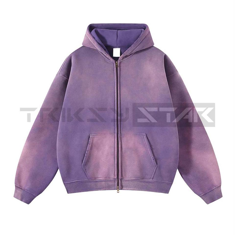 Sweat-shirt à capuche zippé personnalisé pour homme, imprimé tie-dye, délavé, double coupe oversize, ample, en coton 100% doux, collection automne