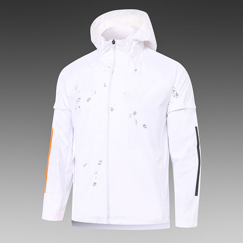 Veste coupe-vent de marque privée personnalisée pour hommes, coutures bicolores, fermeture à glissière, tissu respirant et imperméable, options de taille plus