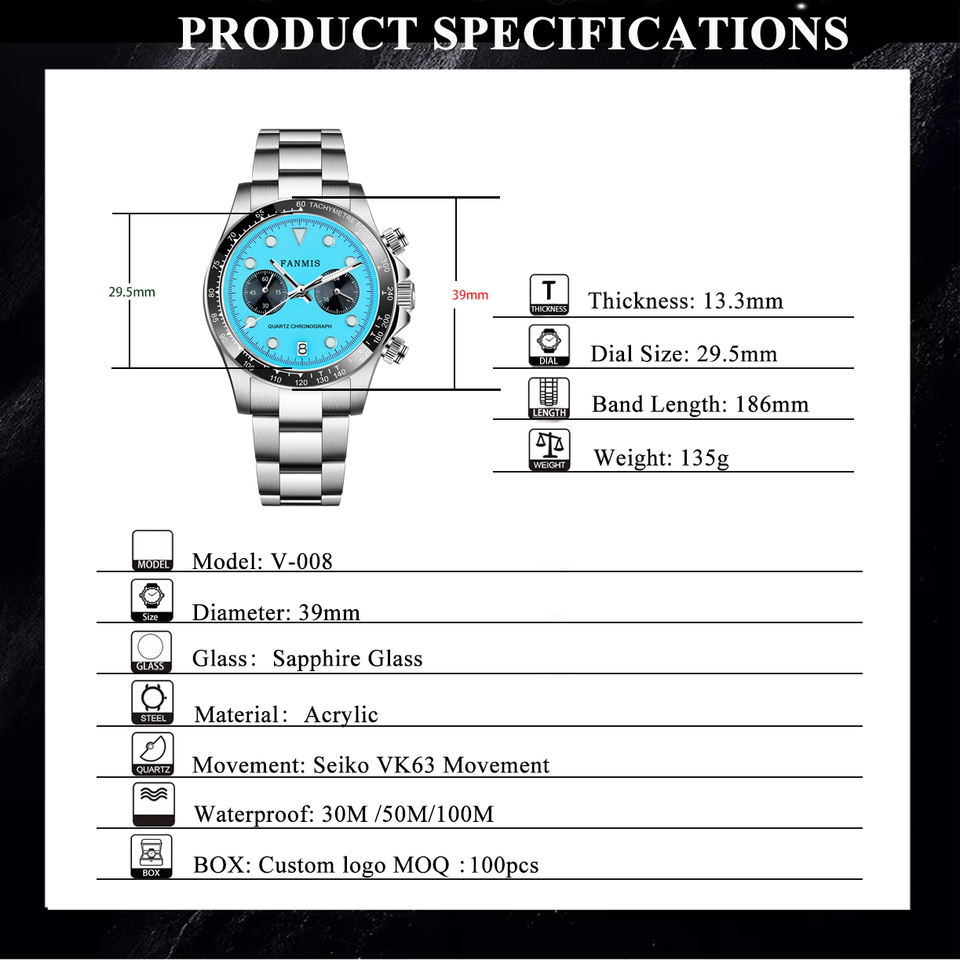 Montre Homme Personnalisée à Quartz avec Mouvement VK64, Boîtier et Bracelet en Acier Inoxydable, Pièce Horlogère de Luxe Haut de Gamme