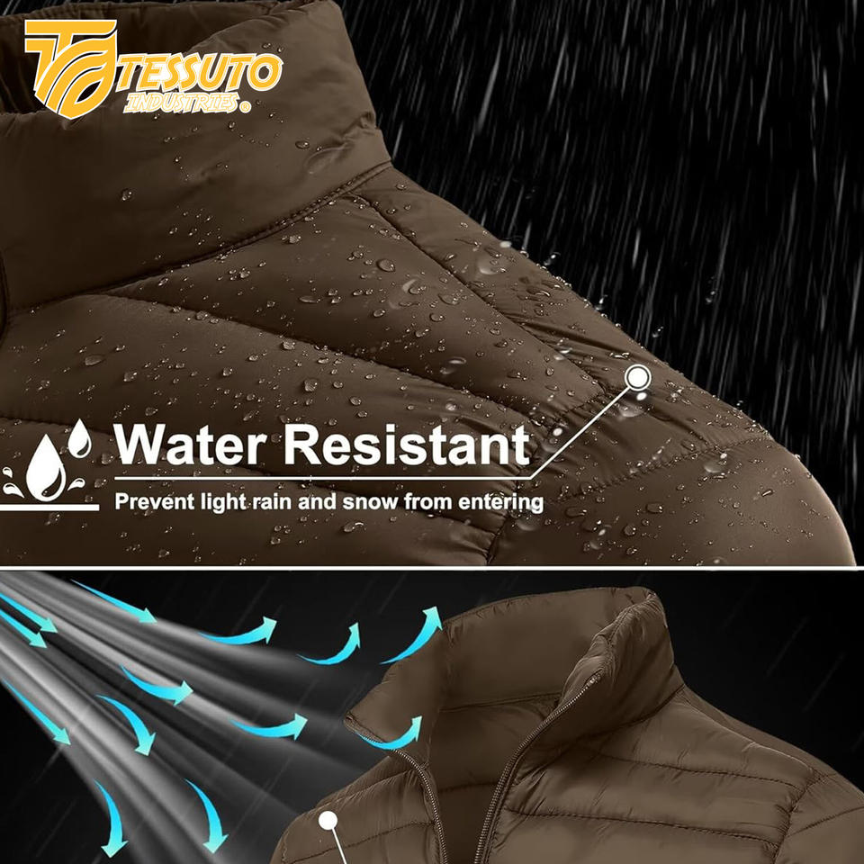 Veste matelassée en satin personnalisée pour hommes Manteau d'hiver rembourré à bulles imperméable avec fermeture à glissière Vêtements d'extérieur de courte longueur