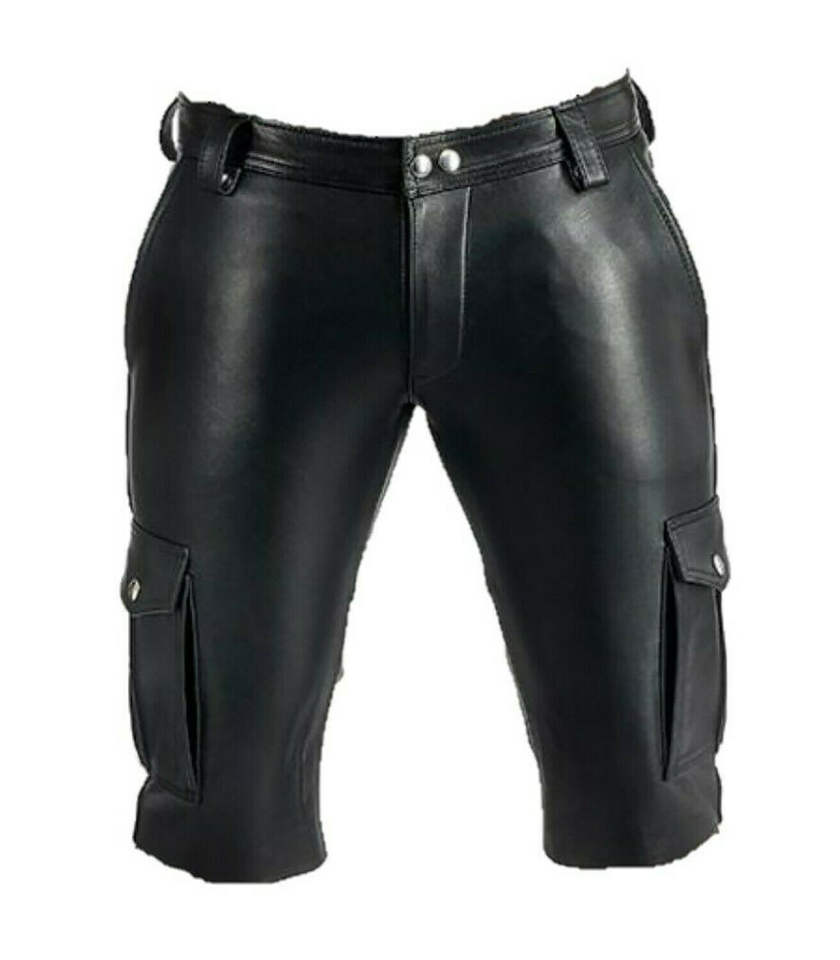 men fashion leather shorts