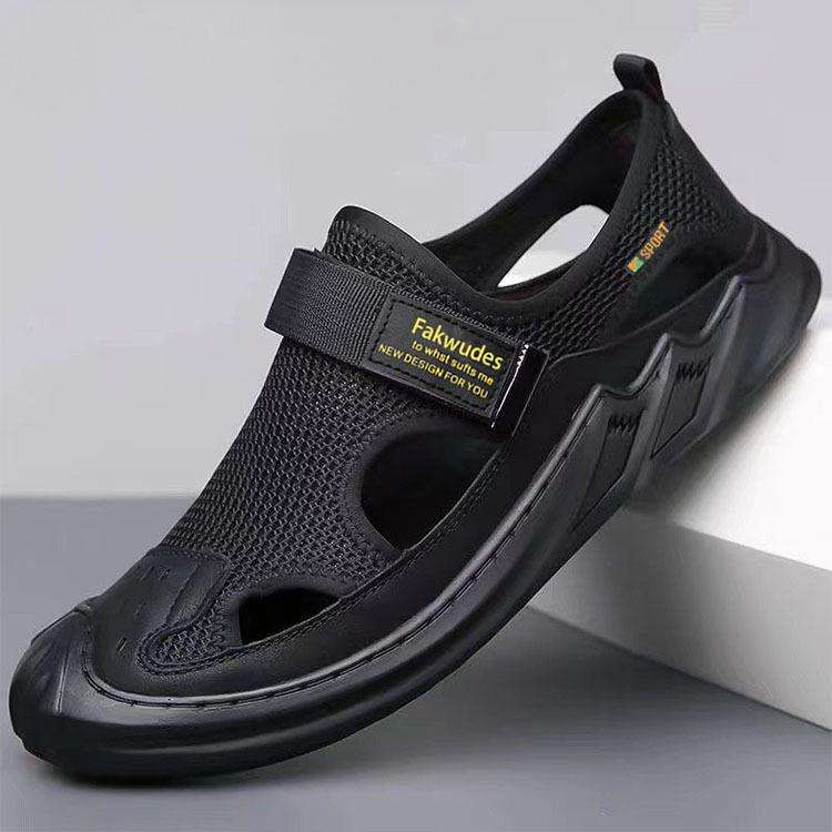 Sandales plates antidérapantes personnalisables grande taille pour hommes, chaussures décontractées d'été pour la plage, sabots respirants en maille à semelle souple pour l'extérieur