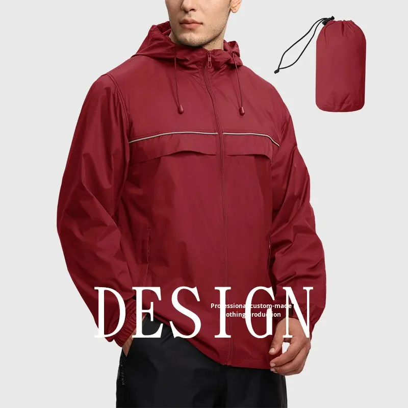Men's Customizable Logo Hooded Raincoat Solid Color Windproof Waterproof Jacket for Spring Autumn Outdoor Canvas Casual Winter