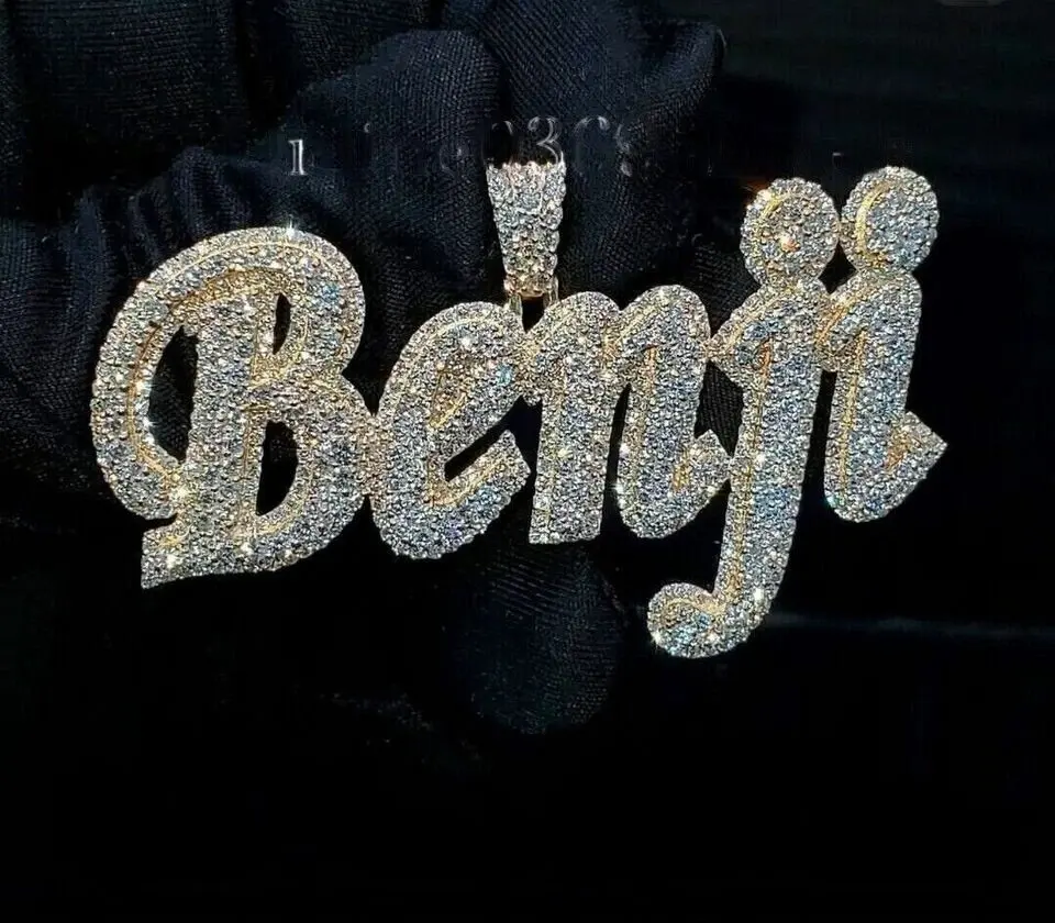 Pendentif personnalisé pour femme en argent sterling avec moissanite ronde de 3,50 carats, style hip-hop