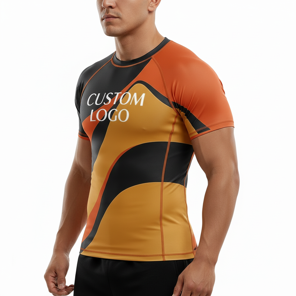 Maillot de sport à manches courtes pour homme, personnalisé, imprimé par sublimation numérique, séchage rapide, uni, 10 pièces, sans limite, sous-vêtement technique