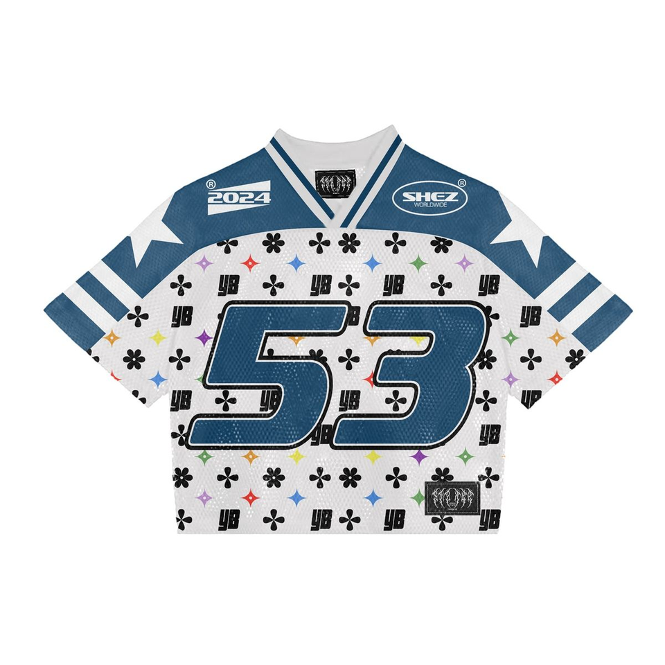 Sigma Gamma Rho SGRho Grec Sororité Bleu Royal Or Football Jersey 100% Polyester Équipe Logo Avant Dos Épaule Broderie